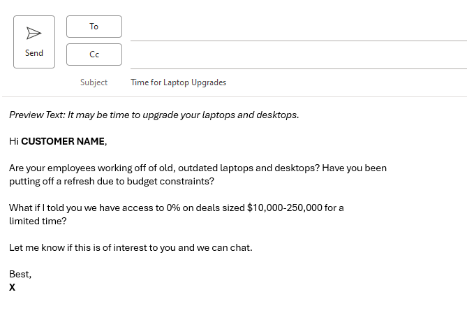 Download this flyer to share with your customers - the win for you is they refresh and the win for them is 0% for a limited time!